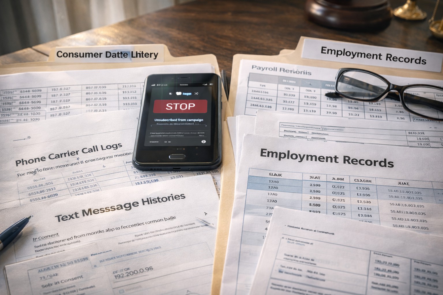 Common records include call logs, text histories, and sign-up forms that show how a consumer’s contact details entered a marketing system. Statutory damages can apply when violations occur. Courts may increase penalties if conduct appears intentional.